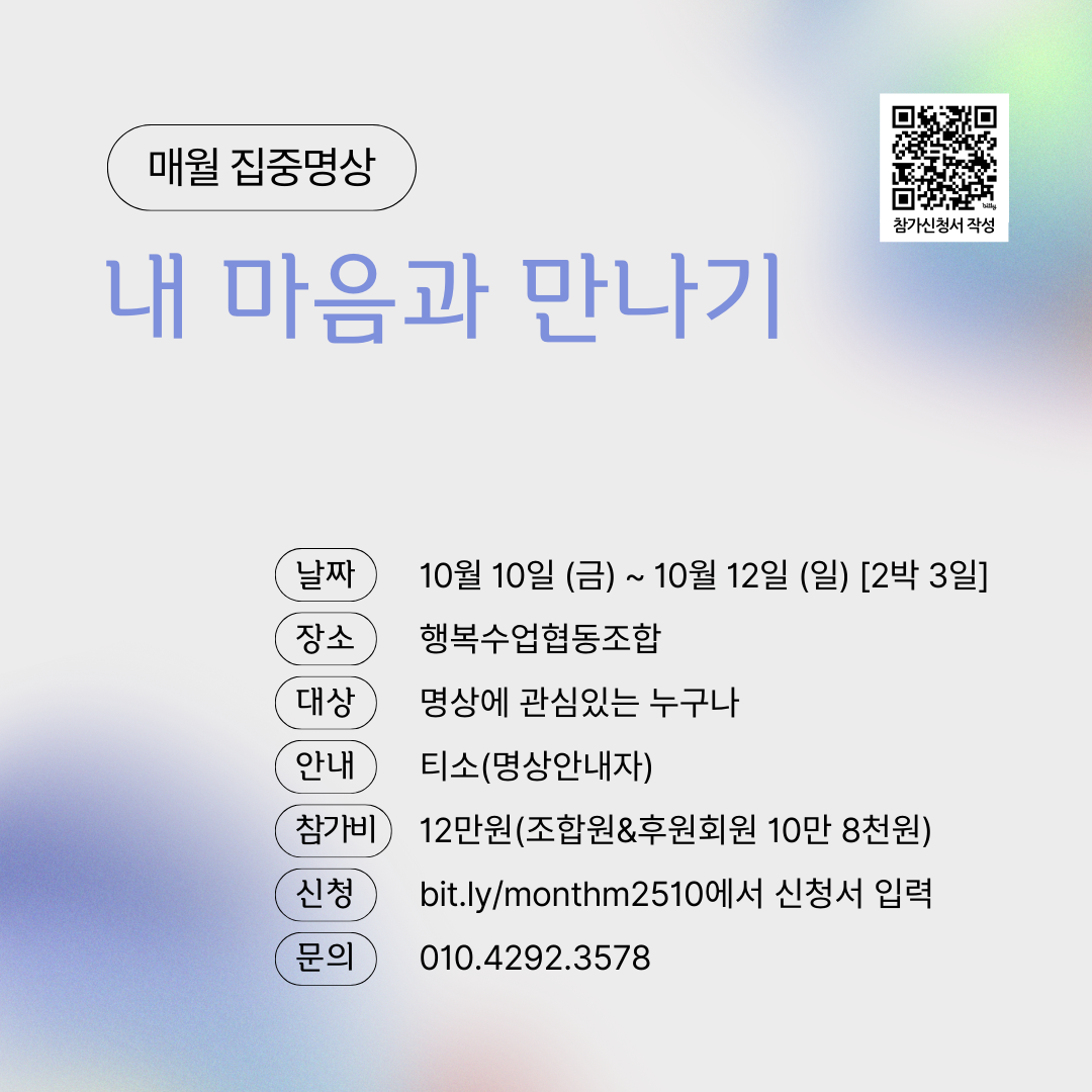 내 마음과 만나기 ● 상세안내 : cafe.naver.com/happyclassmc/4453 ● 참가신청 : bit.ly/monthme2510