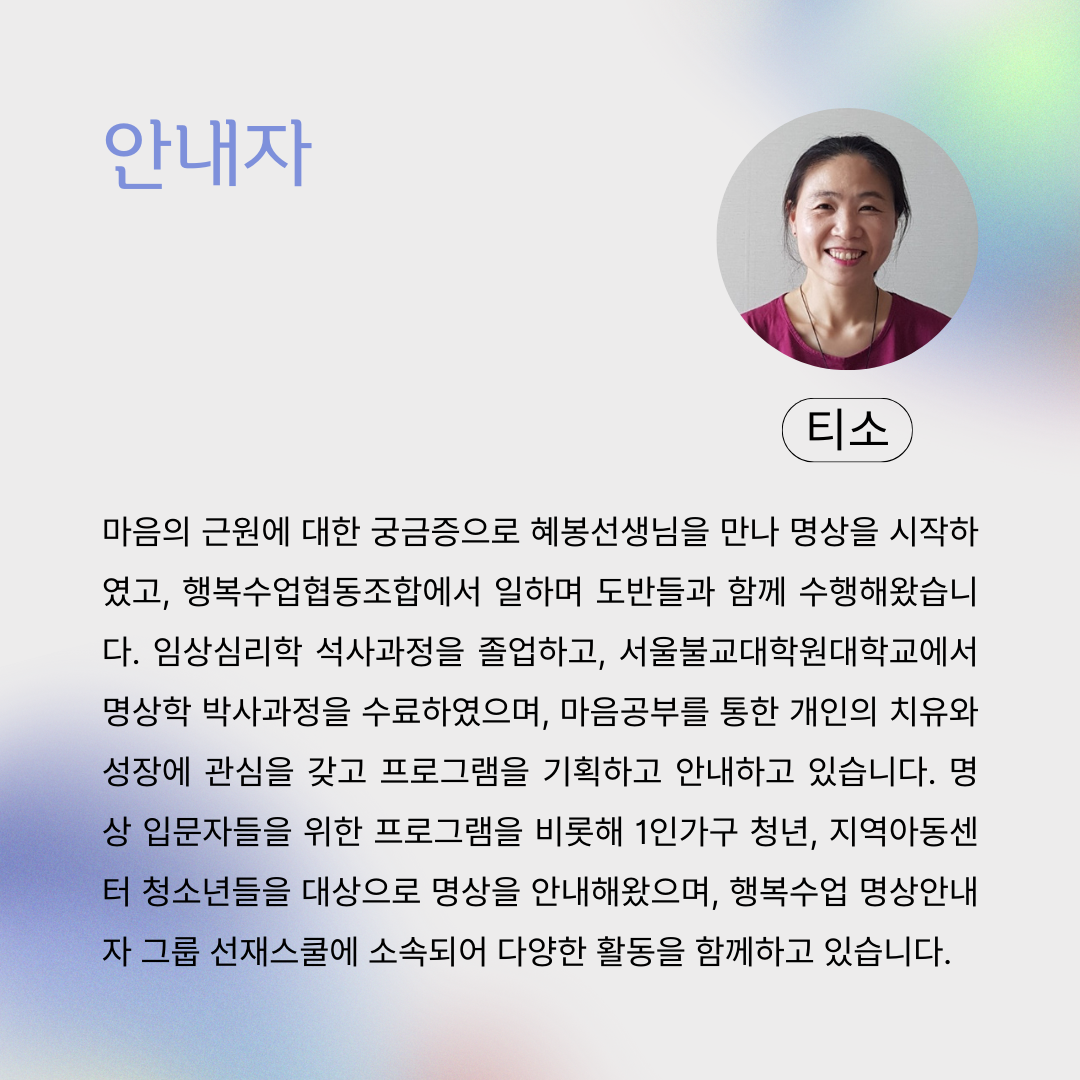 다음글 | [미고재차명상문화원] 차명상 전문지도사 2급 자격증 과정 모집 |