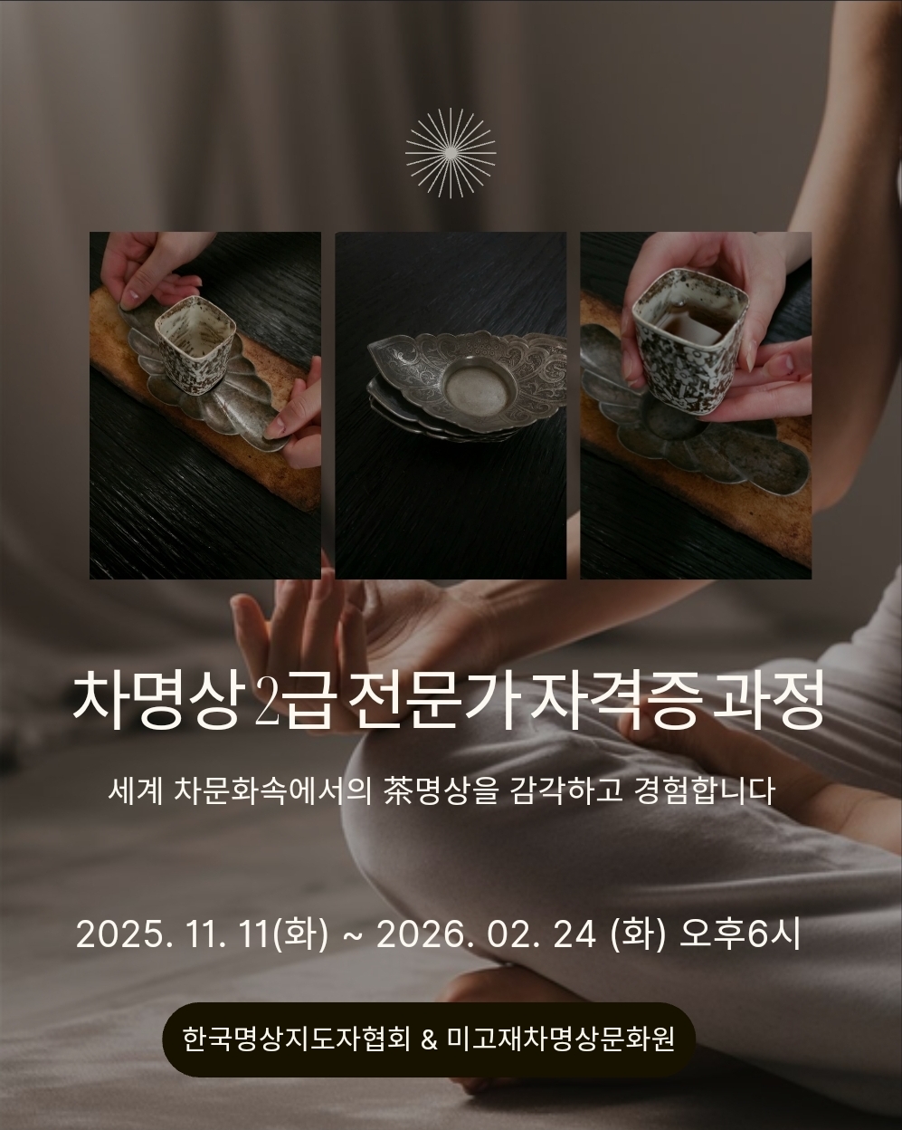 차명상의 수행적 기초를 다지는 입문 단계로, 실습 중심의 명상교육 과정을 통해 차를 매개로 한 문화적 맥락과 경험 속에서 일상의 순간을 수행의 장(場)으로 전환하는 실천 역량을 기릅니다.