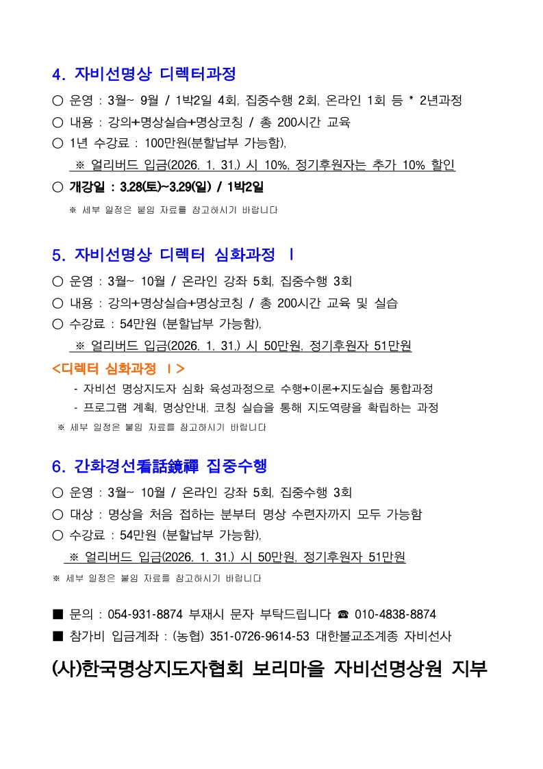 2026년 보리마을 자비선명상원 명상전문지도사 모집