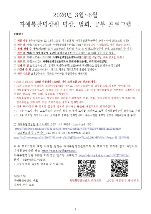 #공지사항 #2026년3월~6월 #자애통찰명상원일정