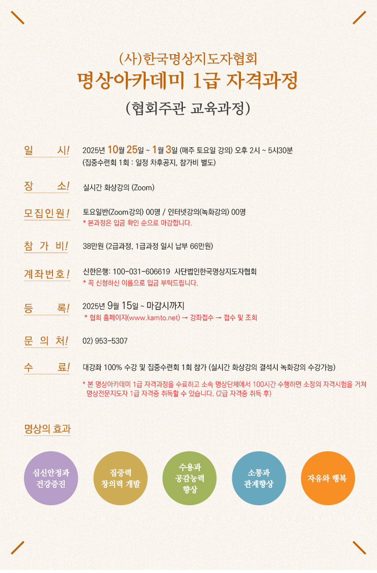 ▶ 명상전문지도사 트레이너과정 취득 시 개인센터 설립가능