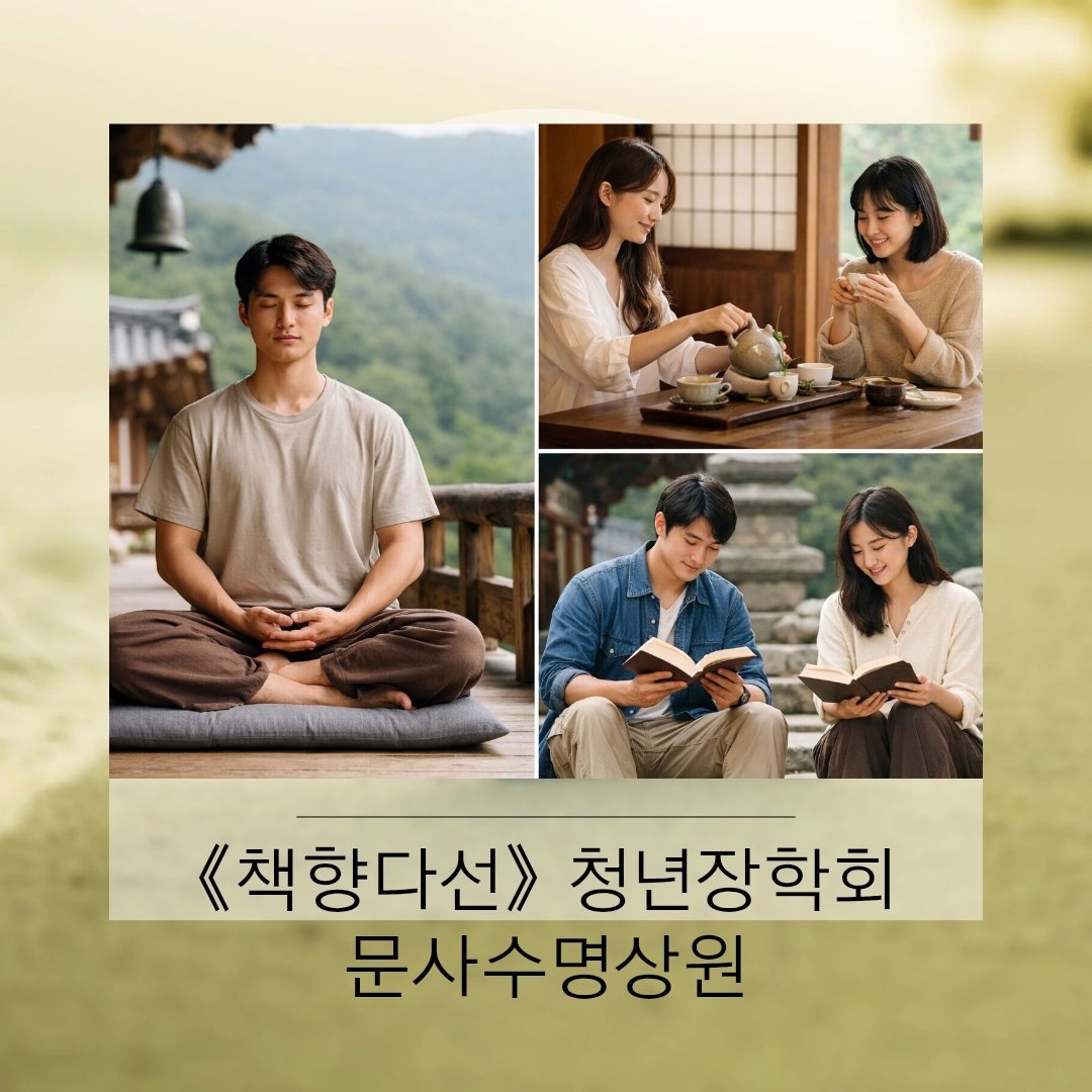 문사수명상원의《책향다선(冊香茶禪) 청년장학회》는 명상지도자가 되고 싶어하는 20대 청년을 지원하는 장학 프로그램 입니다. 사마타 위빠사나명상의 지혜를 배우고 익힌 다음, 미래에 사람들에게 명상을 가르치고 나눔할 수 있는 청년 인재를 육성하고자 하니 많이 지원해주세요.