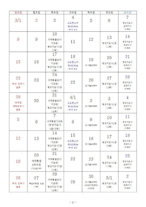 * 자애통찰명상전문지도사 자격증 2급 과정은 매주 화요일 8주 과정(자애통찰명상 기초반과 심화반), 1급 과정은 금요일 저녁 16회 일정으로 진행합니다.