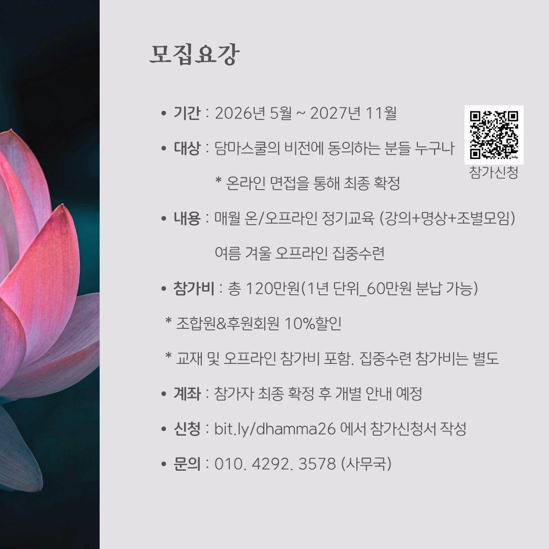 - 신청 : bit.ly/dhamma26 에서 참가신청서 작성